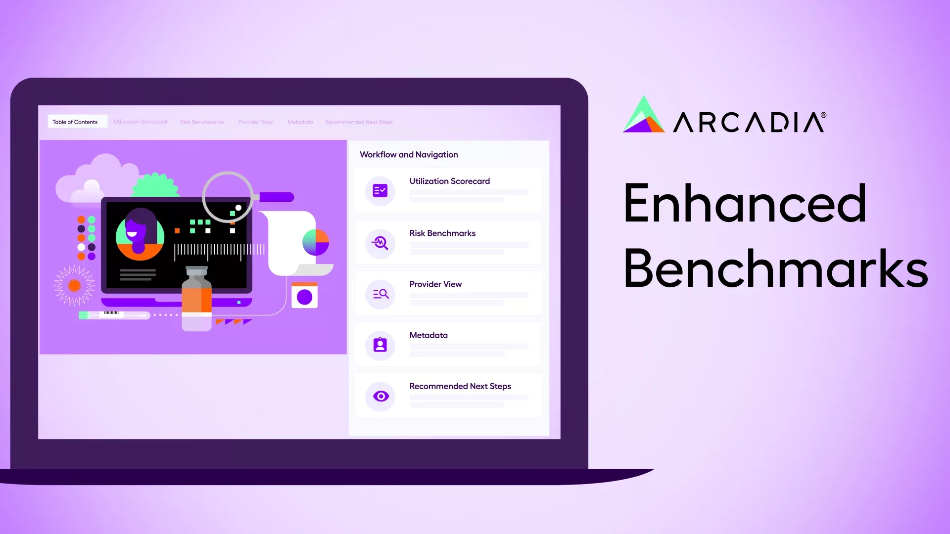Leverage Enhanced Benchmarks to measure cost, utilization, risk, and quality KPIs, enabling you to identify blind spots, track performance, and compare against competitors. This solution integrates CareJourney’s market intelligence and value-based care performance analytics comprised of 100% of Medicare fee-for-service claims and 100% of Medicare Advantage encounters with Arcadia’s de-identified benchmarks sample of 20+ million lives across multiple payer types. With Enhanced Benchmarks, you get access to fresh, transparent, and comprehensive insights across the provider, practice, facility, and network levels to discover opportunities to boost performance.