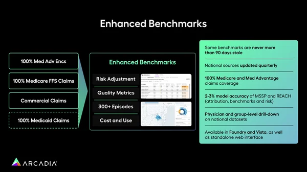 This offers benchmarks on risk adjustment, quality metrics, and cost utilization across more than 300 episodes of care. This robust data foundation ensures that benchmarks are never more than 90 days old and national sources are updated quarterly. The tool also enables physician and group-level drill-downs on national datasets, making it highly actionable and relevant for organizations aiming to navigate competitive healthcare markets intelligently.