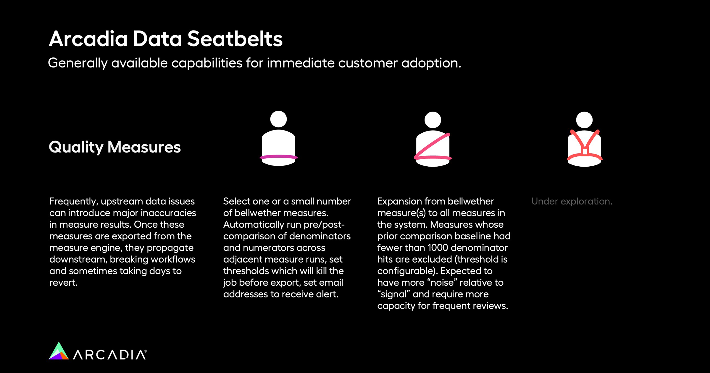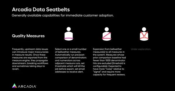 Data seatbelts are not a one-size-fits-all solution but a comprehensive suite of measures tailored to various aspects of data integrity. Now that we’ve covered the spectrum of data seatbelts, let’s define three use cases: quality measures, risk gap profiles, and claims data monitoring. We’ll explore what causes “booms” for each and consider the best data seatbelts based on varying levels of risk tolerance.