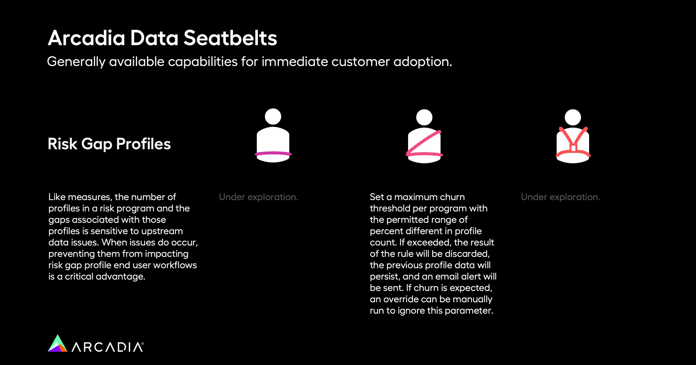 In this case a 2-point data seatbelt would set a limit for how much the number of profiles can change in each program. If the change is too big, the system will ignore the new data and keep using old data. If you know that the number of profiles is going to change by a lot, you can turn off this limit manually. This maintains trust and stability even in the face of data anomalies. This type of check is commonly run by default in software like Arcadia’s Assess.