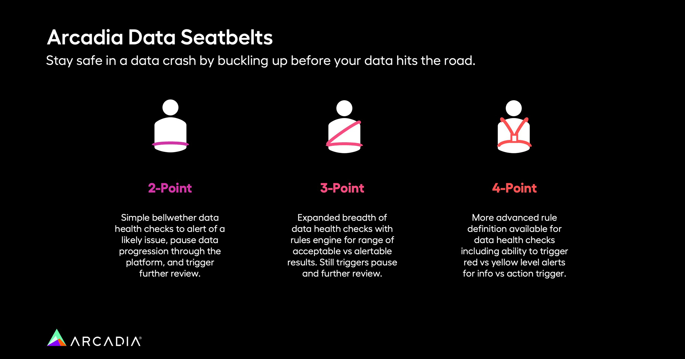 - The 4-Point seatbelt offers advanced rule definitions for data checks, distinguishing between critical alerts and informational flags, fine-tuning the response to data incidents