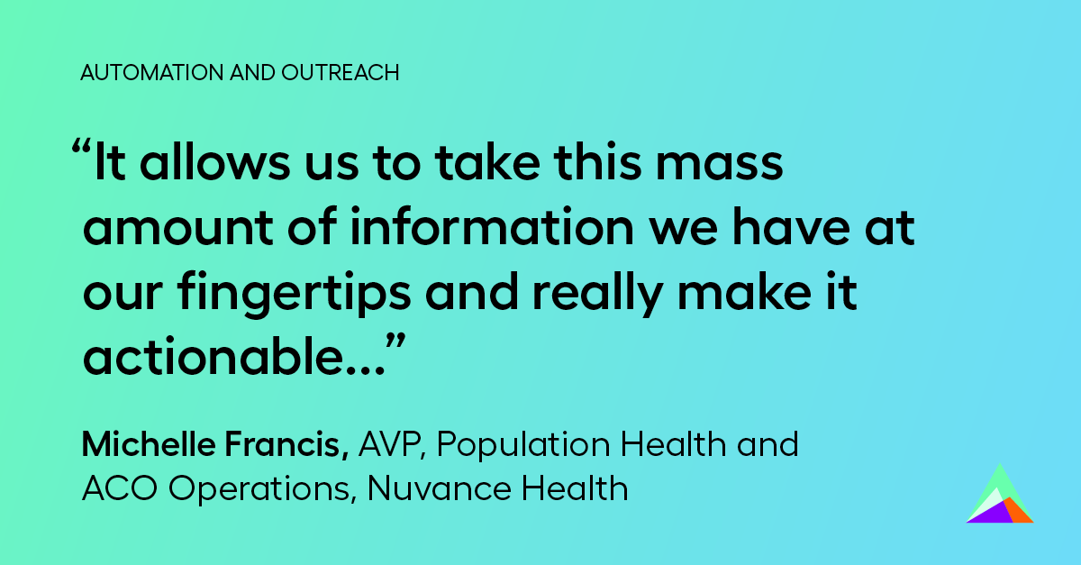 Automated outreach and communication accomplishes several things. First, as Michelle Francis notes, it gives organizations a better picture of their patient population. Secondly, it increases the likelihood of attendance for appointments. And third, it generates trust. When it’s done right, it’s done with the help of robust data, which gives providers and care managers the context they need to intervene effectively.