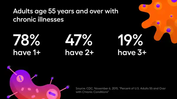 - CDC, November 6, 2015, “Percent of U.S. Adults 55 and Over with Chronic Conditions”