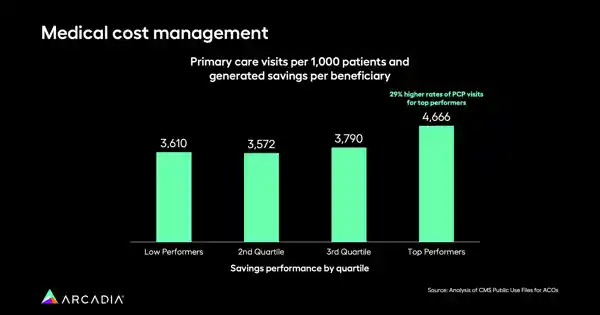 Primary care is instrumental in driving better outcomes in value-based care. It’s the first stop on a patient’s journey, and it can be their introduction into a larger healthcare system. A primary care physician is often a patient’s main healthcare contact, and the first line of defense if something goes wrong. Analysis of publicly reported CMS data over three years shows that organizations with the highest rates of primary care visits were also the best fiscal performers. The top quartile had a 29% higher rate of PCP visits compared to their lower-performing counterparts.