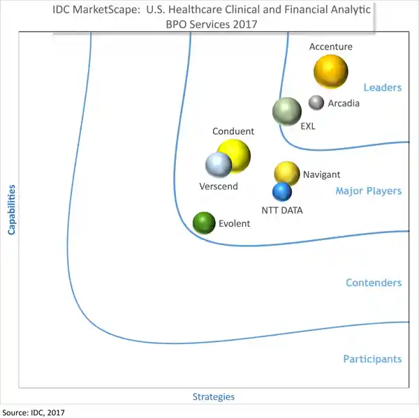 SOURCE: IDC MarketScape: U.S. Healthcare Clinical and Financial Analytic BPO Services 2017 Vendor Assessment, by Cynthia Burghard, Dec 2017, IDC Doc#US43176217.