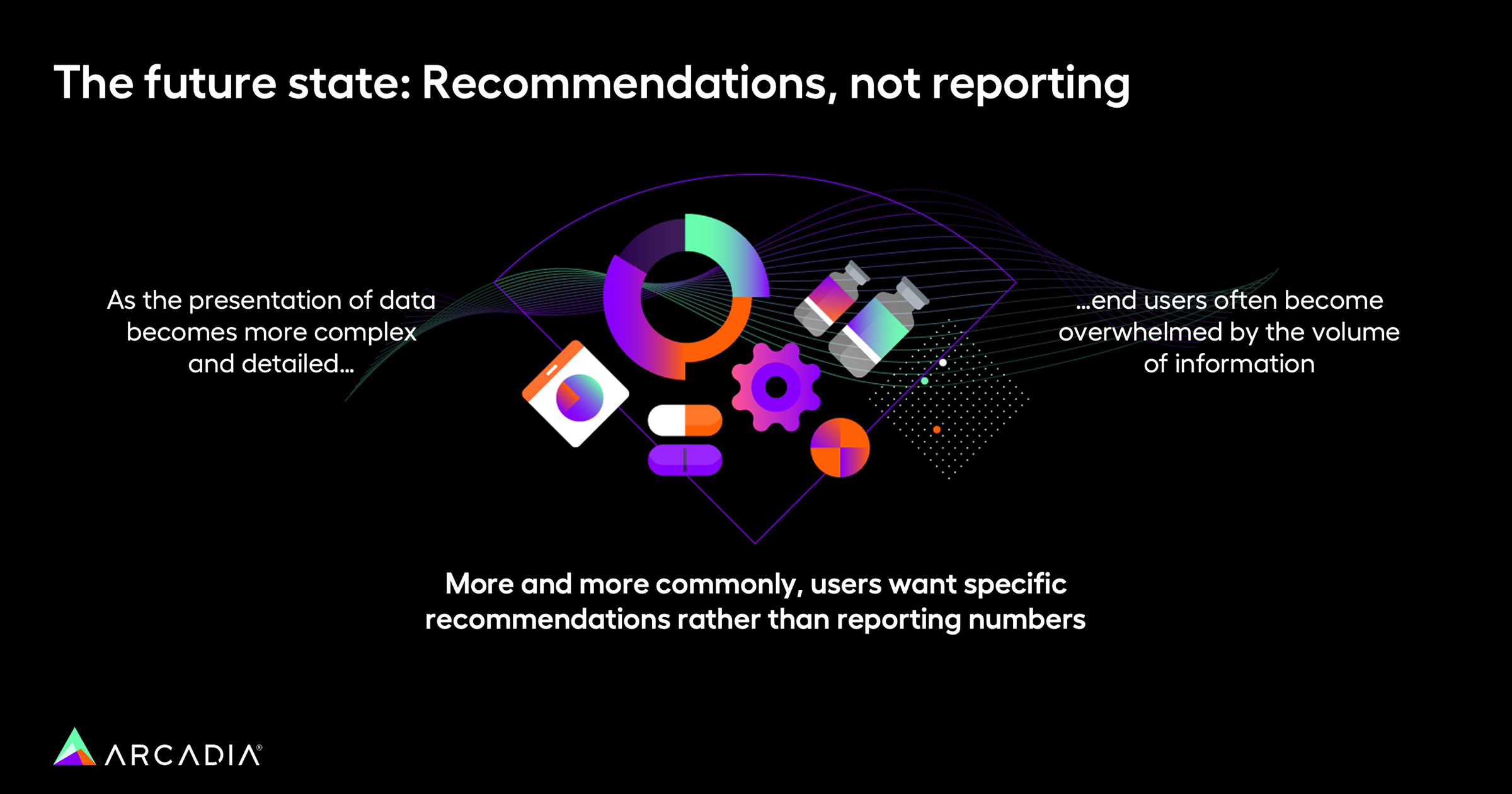 We’re trying to go toward recommended information; more insight-driven dashboards, pushing out information on leakage that they would have gotten to through a set of filters. Let’s use analytics and data science to produce that information for them.
