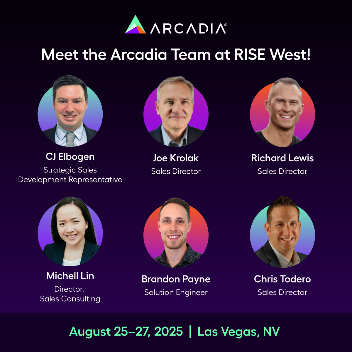Viva Las Vegas! The Arcadia team is heading to RISE West — and we’re ready to talk all things healthcare transformation. Here’s who you’ll meet: