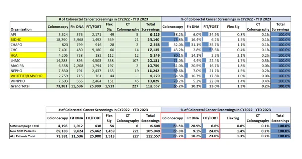 All Risk Payers: Number of Colorectal Screenings Completed in CY2022 – YTD 2023