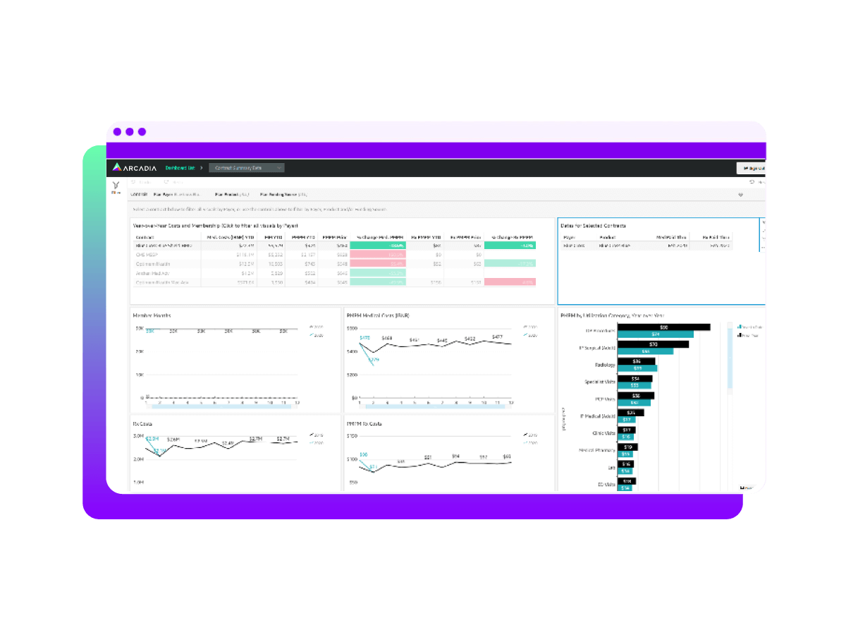 Analysts and leaders interact with Arcadia Vista’s growing library of healthcare intelligence dashboards — built on top of a data platform purpose-built for healthcare — to help data-driven leaders understand holistic performance and fine-grain detail.